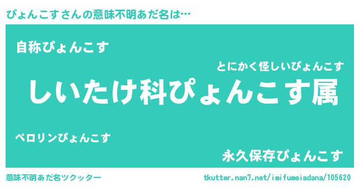 | ヒーロー風カッコイイあだ名 | 『超時空戦士ピョンコス』『幻影騎士ピョ』 |