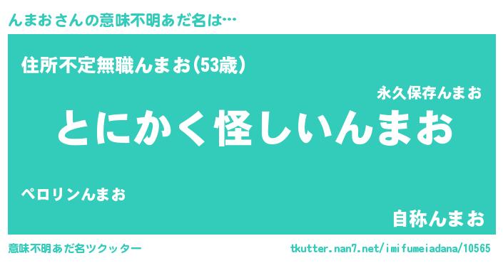 | 男性向けラノベタイトル風あだ名 | 『んまおの嫁は女の子じゃないと思った?』 |
