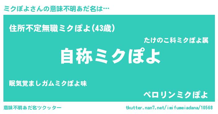 | 欧米人風あだ名 | 『ケンブリッジミクぽよ』 |