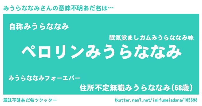 | 欧米人風あだ名 | 『マイケルみうらななみ』 |