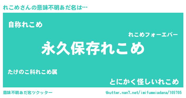 | 男性向けラノベタイトル風あだ名 | 『れこめという概念が存在しない退屈な世界 』 |