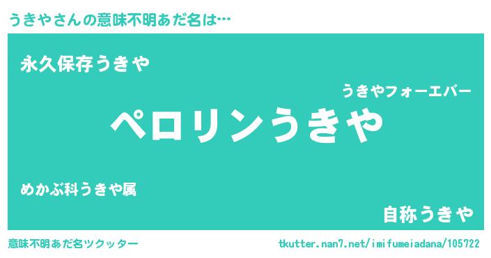| 女子向けラノベタイトル風あだ名 | 『(仮)うきやのやんごとなき事情』 |