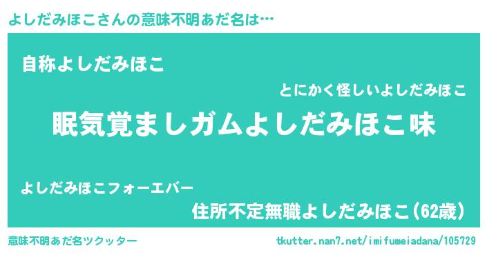 | 胡散臭い通販商品みたいなあだ名 | 『100人中100人が認めたイリジウム磁石…その名も「よしだみほこ」』 |