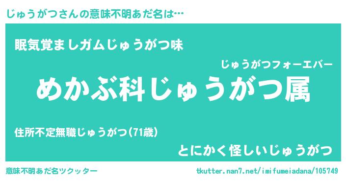 | 男性向けラノベタイトル風あだ名 | 『ジュウガツスレイヤー』 |