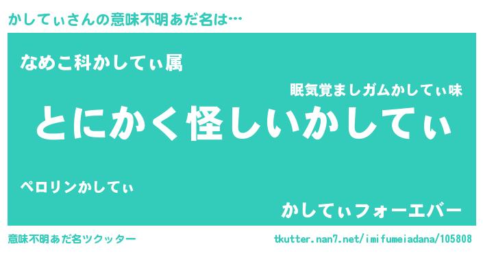 | 女子向けラノベタイトル風あだ名 | 『かしてぃ様がみてる』『かしてぃ恋絵巻』 |