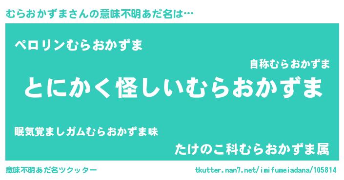| 女子向けラノベタイトル風あだ名 | 『むらおかずまの卵を拾いまして』 |