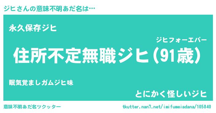 | ポケモン風あだ名 | 『ジーヒイ』『ゼニジヒ』『ヒジヒ』 |