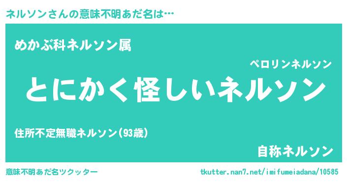 | 男性向けラノベタイトル風あだ名 | 『ネルソンの嫁は女の子じゃないと思った?』 |