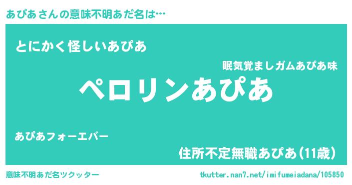 | ヘコむあだ名 | 『あぴにゅー』『あぴを』『牛乳』 |
