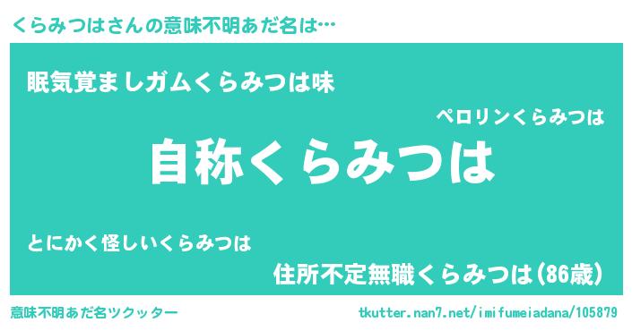| 肩書あだ名 | 『くらみつは船長』『くらみつは総統』 |