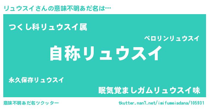 | 男性向けラノベタイトル風あだ名 | 『Re:リュウスイから始める異世界生活』 |