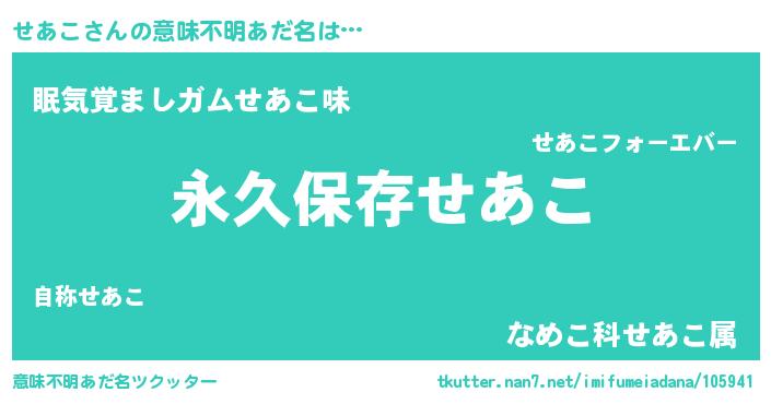 | ヒーロー風カッコイイあだ名 | 『ネオセアコ』『友情の使者せあこ』 |