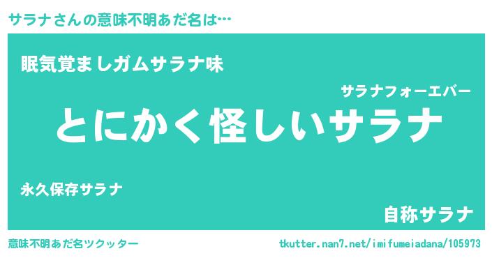 | 胡散臭い通販商品みたいなあだ名 | 『信頼と実績のペンダント…その名も「サラナ」』 |