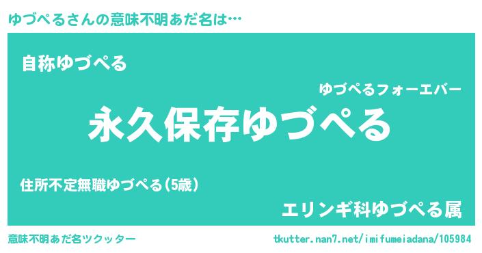 | ヒーロー風カッコイイあだ名 | 『ネオユヅペル』『超時空戦士ユヅペル』 |