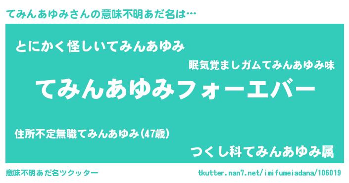 | 欧米人風あだ名 | 『てみんあゆみクリステル』 |