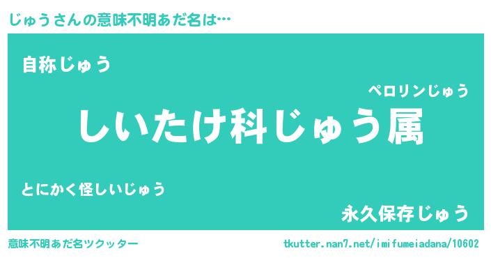 | ヘコむあだ名 | 『じゅう(遠い目)』『じゅにー』 |