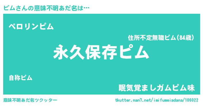 | ヘコむあだ名 | 『ピム(小並感)』『ピムにー』 |