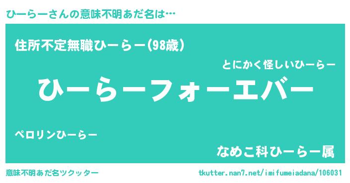 | 欧米人風あだ名 | 『ひーらークリステル』 |