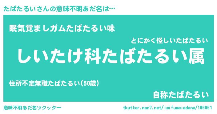 | 欧米人風あだ名 | 『トリンドルたばたるい』 |