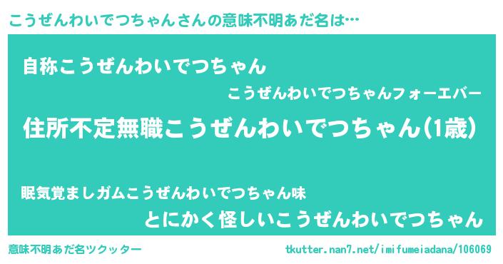 | 男性向けラノベタイトル風あだ名 | 『この素晴らしい世界にこうぜんわいでつちゃんを!』 |