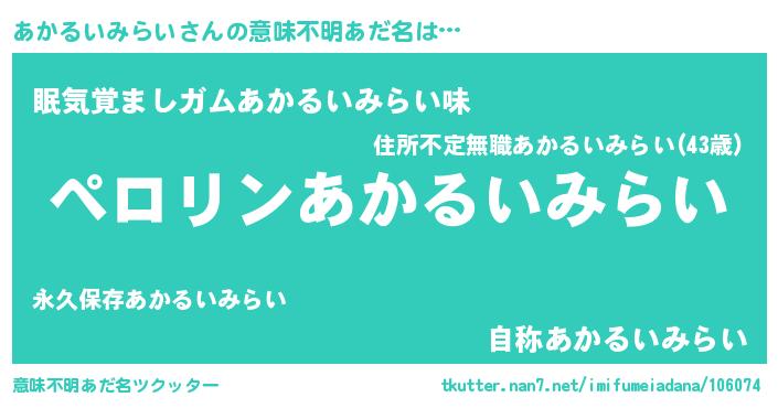 | 欧米人風あだ名 | 『アンジェラ・あかるいみらい』 |