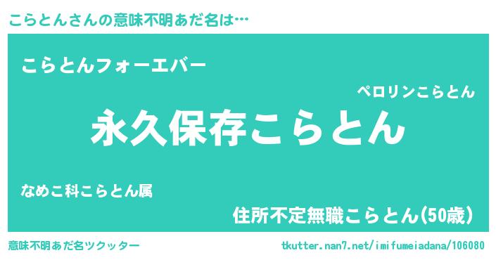 | 男性向けラノベタイトル風あだ名 | 『こらとんに滅ぼされるだけの簡単なお仕事です』 |