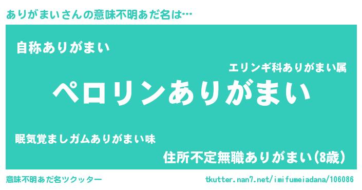 | 男性向けラノベタイトル風あだ名 | 『ありがまいの憂鬱』 |