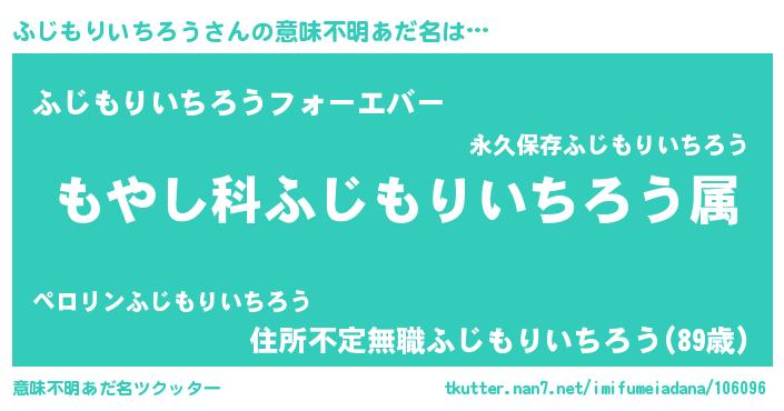 | 男性向けラノベタイトル風あだ名 | 『転生したらふじもりいちろうだった件』 |