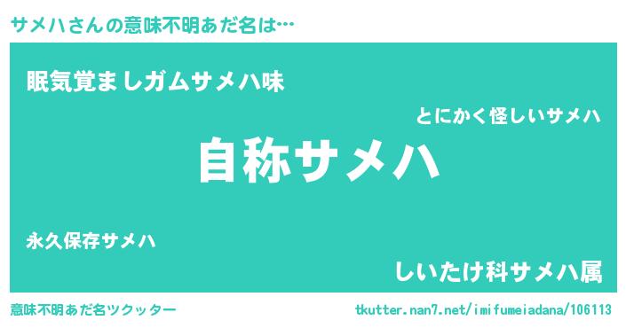 | ヘコむあだ名 | 『サメを』『サメハ(遠い目)』 |