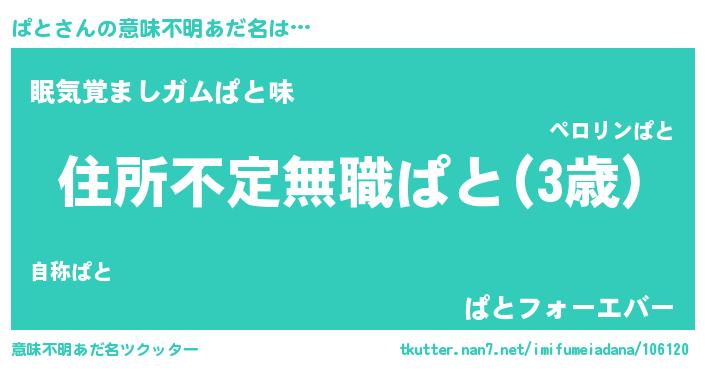 | ヒーロー風カッコイイあだ名 | 『仮面パトダー』『愛の使者ぱと』 |