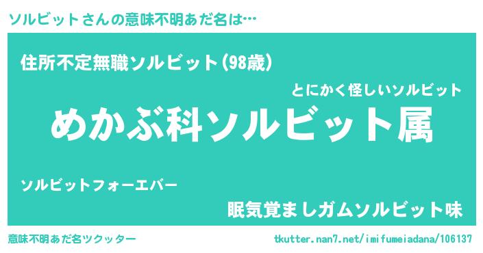 | 男性向けラノベタイトル風あだ名 | 『ソルビットスレイヤー』 |
