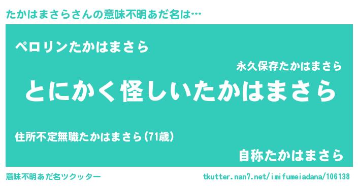 | 欧米人風あだ名 | 『ウサインたかはまさら』 |