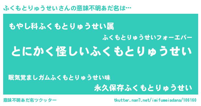 | 胡散臭い通販商品みたいなあだ名 | 『伝統あるサプリメント…その名も「ふくもとりゅうせい」』 |
