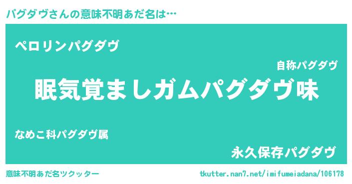 | 男性向けラノベタイトル風あだ名 | 『ノーゲーム・ノーパグダヴ』 |