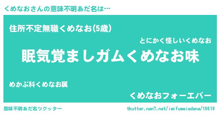 | 男性向けラノベタイトル風あだ名 | 『緋弾のクメナオ』『魔弾の王とくめなお』 |