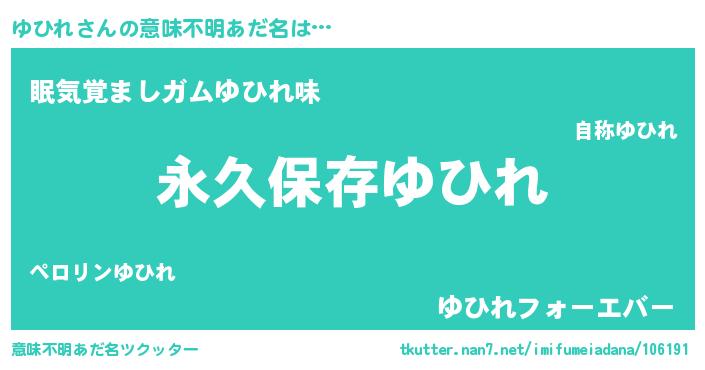 | 男性向けラノベタイトル風あだ名 | 『ゆひれという概念が存在しない退屈な世界 』 |