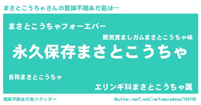 | 男性向けラノベタイトル風あだ名 | 『まさとこうちゃという概念が存在しない退屈な世界 』 |