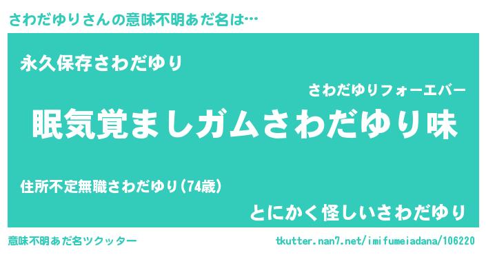 | 男性向けラノベタイトル風あだ名 | 『ノーゲーム・ノーサワダユリ』 |