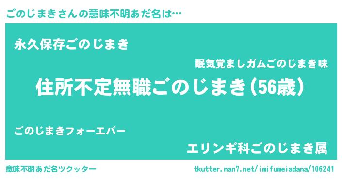 | 女子向けラノベタイトル風あだ名 | 『ごのじまきが死なない童話 林檎のごのじまきの診療簿』 |