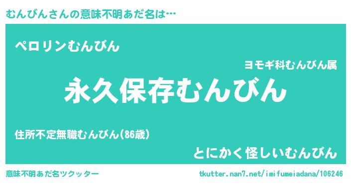 | 男性向けラノベタイトル風あだ名 | 『むんびんという概念が存在しない退屈な世界 』 |