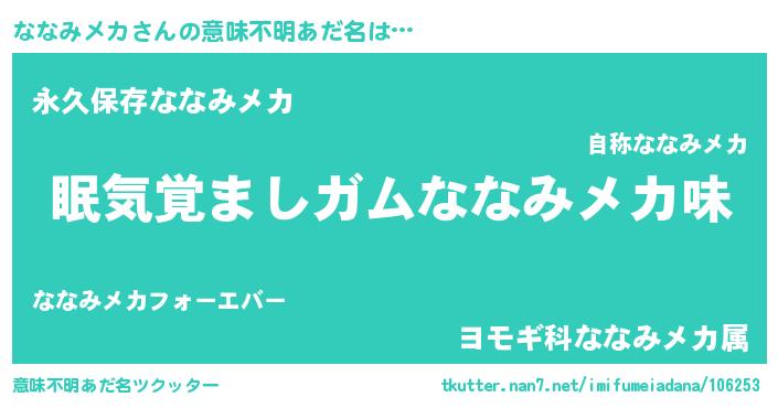 | 欧米人風あだ名 | 『アンジェラ・ななみメカ』 |