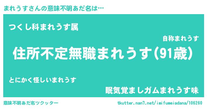 | 男性向けラノベタイトル風あだ名 | 『この素晴らしい世界にまれうすを!』 |