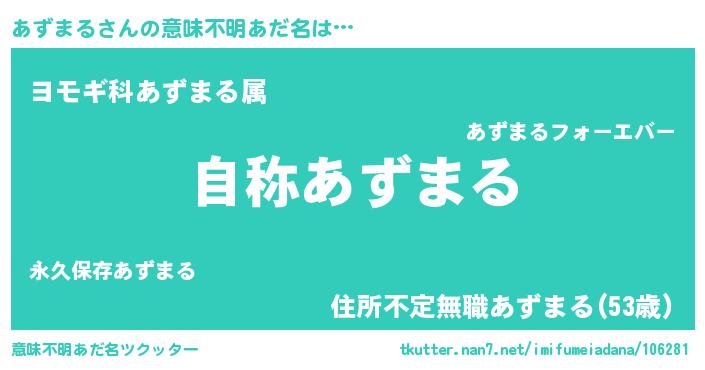 | 男性向けラノベタイトル風あだ名 | 『うちのあずまるが世界を掌握している!』 |