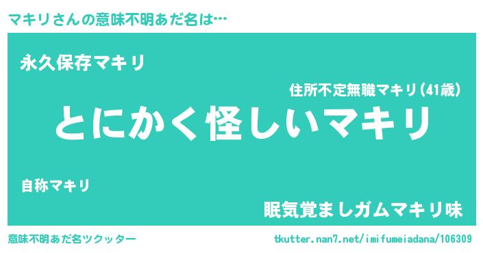 | ヘコむあだ名 | 『マキを』『マキリ(笑)』『つくし』 |