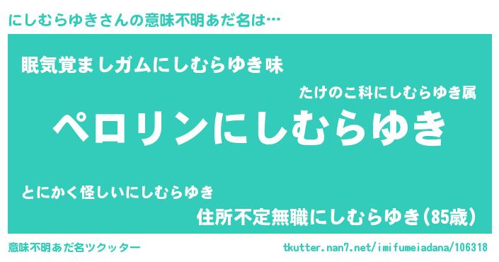 | 男性向けラノベタイトル風あだ名 | 『にしむらゆきの憂鬱』 |