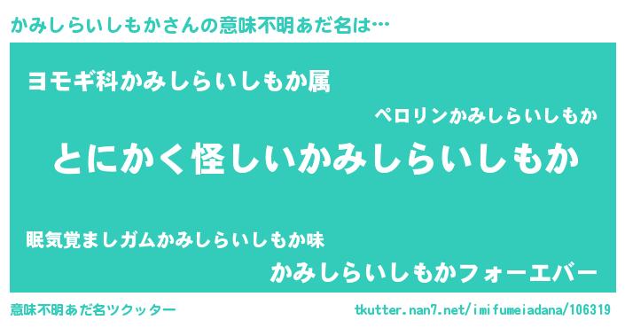 ポケモン風あだ名 | 『ヒカミシライシモカ』『カミキング』 |