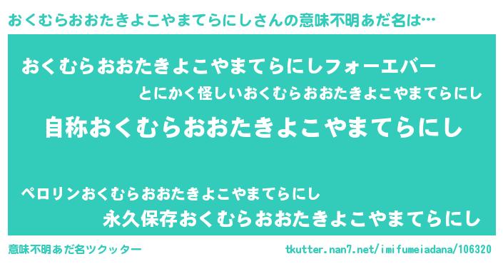 | 料理風あだ名 | 『おくむらおおたきよこやまてらにしの炊き込みご飯』 |