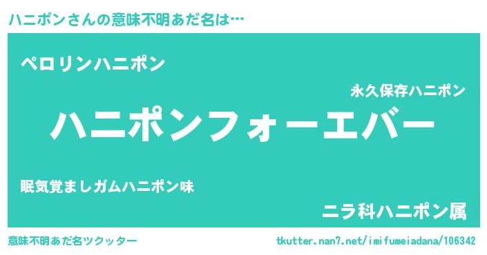 | ファンタジー風あだ名 | 『エターナルハニポンー』『ハニフェル』 |