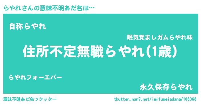 | ヘコむあだ名 | 『らやれ(小並感)』『つくし』 |