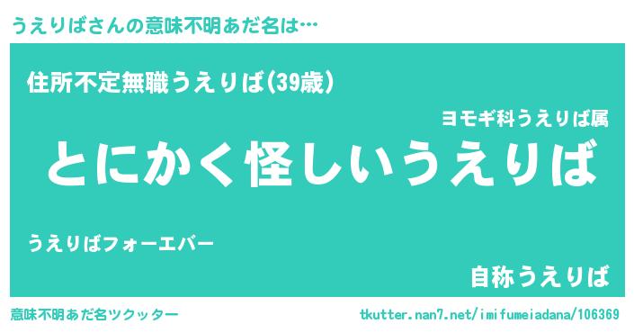 | 男性向けラノベタイトル風あだ名 | 『うえりばに滅ぼされるだけの簡単なお仕事です』 |